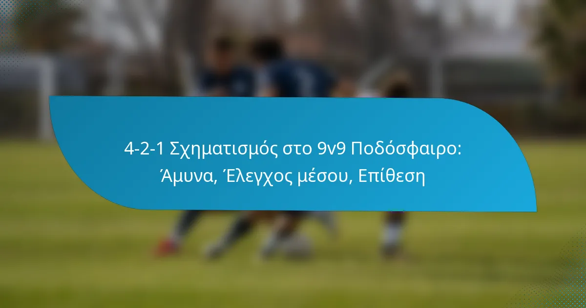 Η διάταξη 4-2-1 στο ποδόσφαιρο 9v9 είναι μια τακτική ρύθμιση που τονίζει μια σταθερή αμυντική δομή, ενώ επιτρέπει αποτελεσματικό έλεγχο του κέντρου και επιθετικές ευκαιρίες. Με τέσσερις αμυντικούς, δύο κεντρικούς μέσους και έναν επιθετικό, αυτή η διάταξη επιτυγχάνει μια ισορροπία μεταξύ της διατήρησης μιας ισχυρής άμυνας και της δημιουργίας επιθετικών ευκαιριών, καθιστώντας την μια ευέλικτη επιλογή για ομάδες που επιθυμούν να βελτιώσουν το παιχνίδι τους.