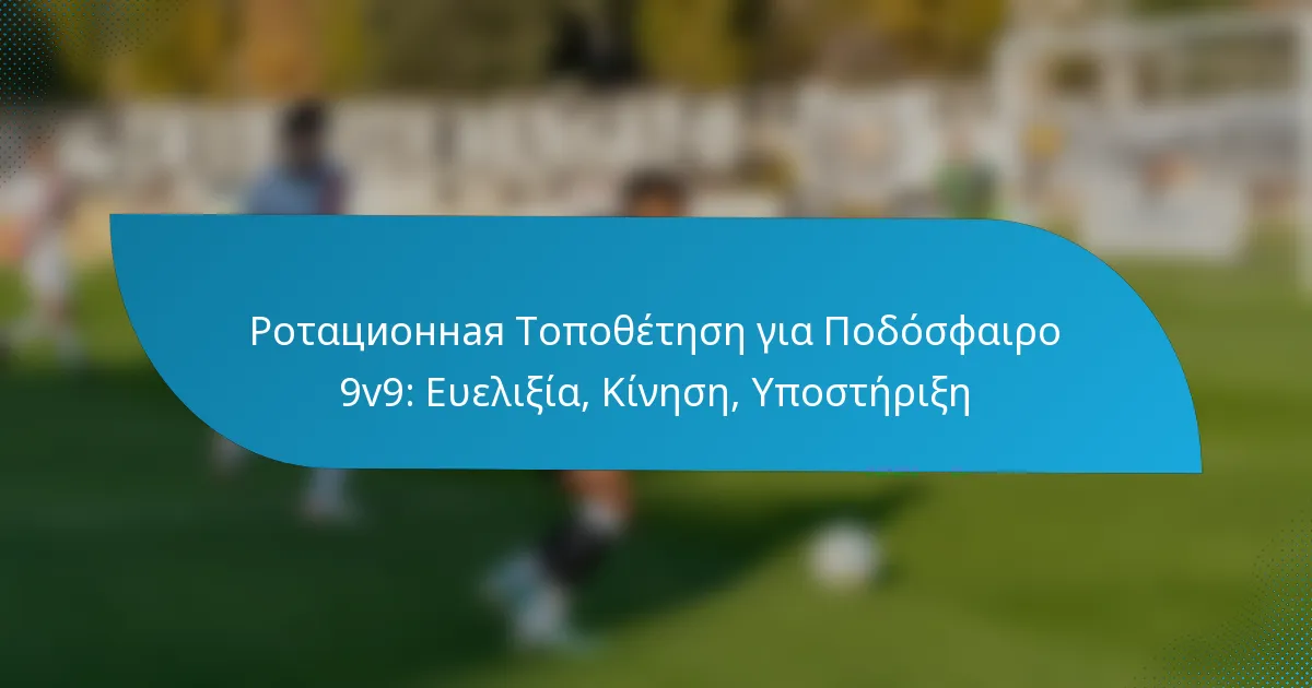 Η περιστροφική τοποθέτηση είναι μια τακτική στρατηγική που τονίζει τη ρευστή κίνηση μεταξύ των παικτών αντί για στατικές θέσεις. Είναι κρίσιμη στο ποδόσφαιρο 9v9 καθώς προάγει τον καλύτερο έλεγχο της μπάλας, δημιουργεί επιλογές πάσας και ενισχύει τη συνοχή της ομάδας. Αυτή η μέθοδος επιτρέπει στους παίκτες να εκμεταλλεύονται αποτελεσματικά τους χώρους και να ανταποκρίνονται στις κινήσεις των αντιπάλων.